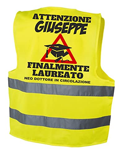 Regala questo giubbino ad alta visibilità con la stampa della festa di laurea, del compleanno, del pensionamento o per una ricorrenza che vuoi che rimanga indimenticabile. Sicuramente con questo articolo non passerai inosservato e potrai avere un ricordo unico.