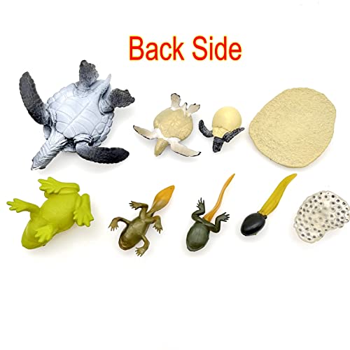 Questi 2 set del ciclo di vita mostrano le fasi della vita dal girino alla rana e dall'uovo alla tartaruga marina. Grandi giocattoli educativi e giocattoli per l'apprendimento primaverile. È un'illustrazione visiva davvero utile per questi punti da cui un bambino può imparare.
