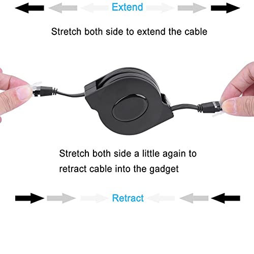 Fasient Cavo Portatile, 1pc 1m/2m Regolabile Retrattile RJ45 CAT6 Rete Ethernet Cavo Piatto LAN ad Alta velocità Cavi Patch UTP 1000M, Adatto per Router PC Switches e Moedm Nero(2m)