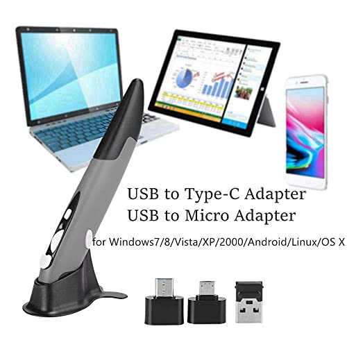Fasient Mouse Penna Wireless, Mouse Ottico Wireless USB 2.4GHZ 800/1200/1600 DPI Smart Mouse per Scrittura a Mano Regolabile per PC Laptop Computer notebook (Grigio)