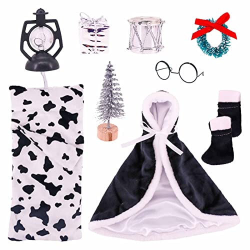 FASSME Accessorio Natalizio per Bambola Elfo | Sacco a Pelo Natalizio e Set di Giocattoli con Mantello con Ghirlanda,Abbigliamento da Elfo da scrivania per Bambini con Tamburo, Bastoncino di Zucchero