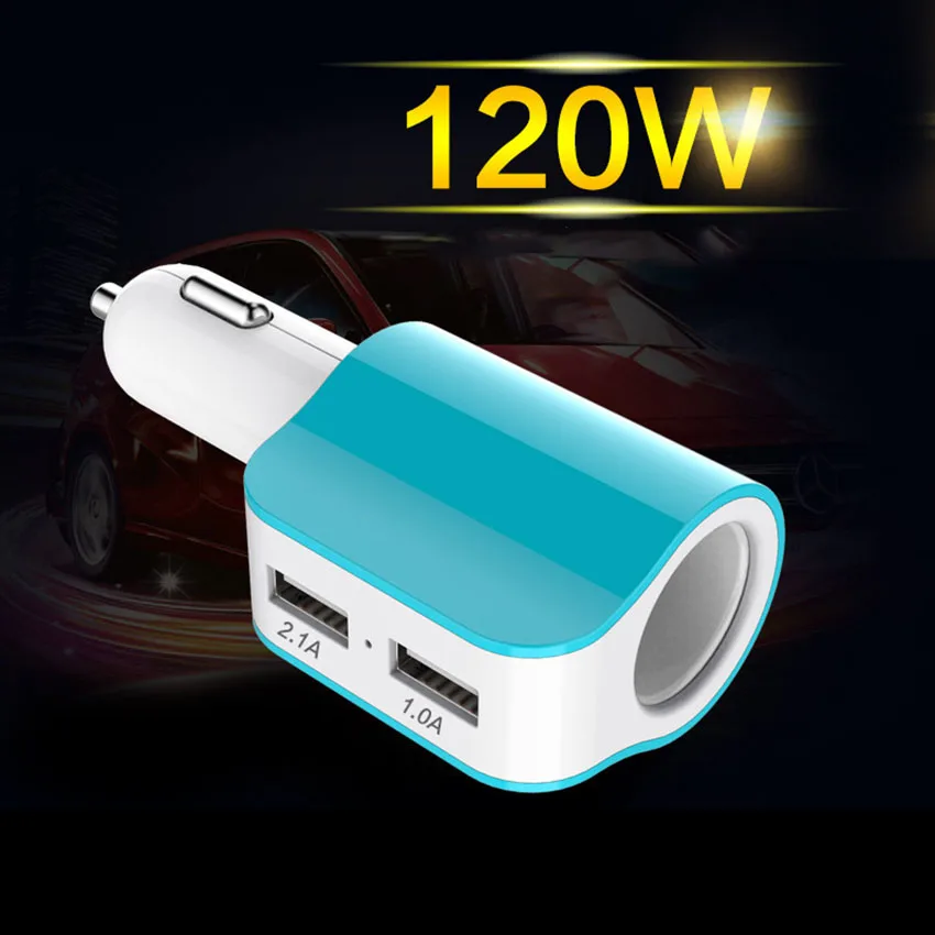 3 in 1 Fast Car Charger for Mobile Phone Tablet PC Quick Multi 120W USB Car Charge Adapter 12-24V 2.1A Cell Phone Charging