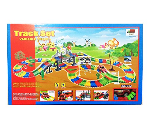 E Fast CE4 Children Kids Fun Car Flexible Variable Track Set 257 Pcs LED Light Battery Operated Racing Game Set by E FAST