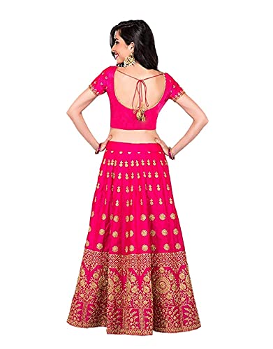 Fast Fashions Lehenga Choli da donna rosa pesante ricamato in taffettà seta (rosa-Free Size), Rosa, Taglia Unica