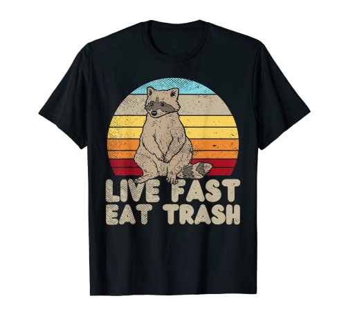 Fast Live Eat Trash Raccoon Sunset Retro Street Cat Gift Maglietta