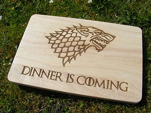 FastCraft GAME OF THRONES IDEA REGALO AVUTO BAMBÙ TAGLIERE DI LEGNO TAGLIO Formaggio vitto tovaglietta cena è IN ARRIVO inverno lupo LEONE INCISO LEGNO NOVITA legno Cucina (24x17x1.5 cm)