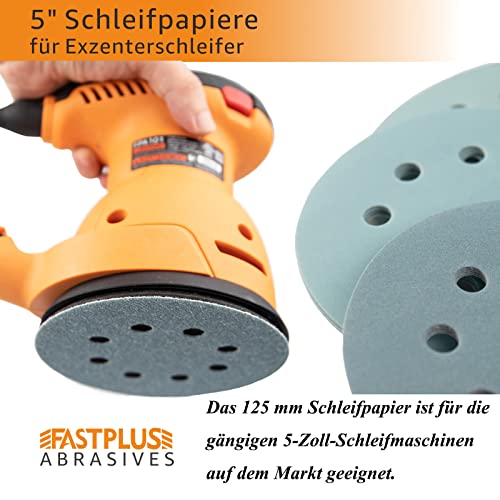 FASTPLUS Carta vetrata 125 mm, velcro 40/60/80/120/180/240/320/400/600/800, grana mista, carta vetrata assortita, 125 mm, 8 fori per levigatrice orbitale (100 pezzi)