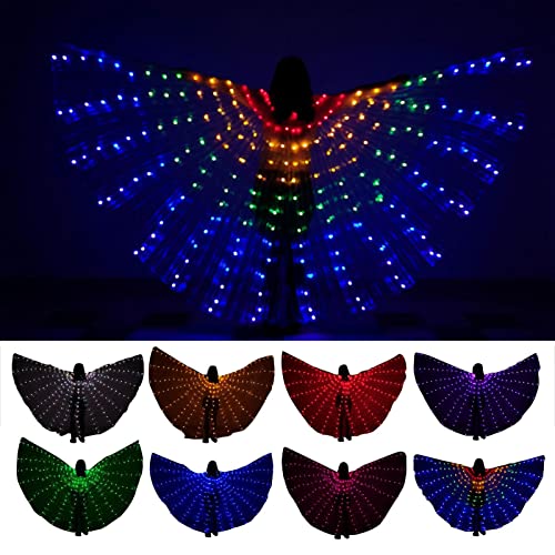 ⇋Brillante e affascinante: le ali di danza del ventre hanno un collo autoadesivo, facile da indossare e da togliere. Le ali possono sollevare la testa, possono essere estese a 360 gradi, bellissime ed eleganti. Le luci a LED luminose ti fanno brillare di più tra la folla, così la tua danza più affascinante e attraente.