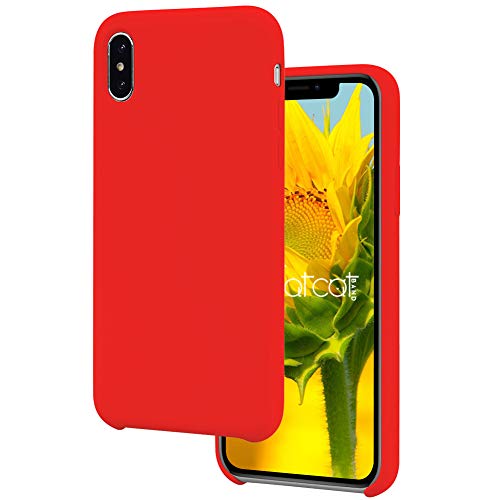 FatcatBand Cover per iPhone XS/iPhone X (5,8"), Custodia Gomma Gel Silicio Liquido con Fodera Microfibra Morbida Caso Silicone Sottile Anti-Graffio Protettiva Cover (Rosso)