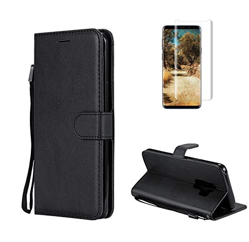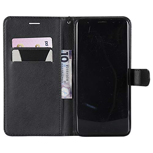 Fatcatparadise Cover Galaxy S9 Plus, Custodia Libro Pelle PU e TPU Silicone con Funzione Supporto Chiusura Magnetica Portafoglio Libretto Bumper Case per Samsung Galaxy S9 Plus (Nero)