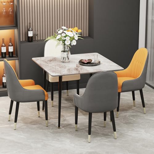 【Piano di lavoro in pietra sinterizzata premium, vera eleganza】Il perfetto tavolo da pranzo quadrato, il piano di lavoro è realizzato in pietra sinterizzata di alta qualità. Non è l'effetto degli adesivi in marmo, non solo ha la durezza e la bella consistenza del marmo, ma ha anche una migliore capacità portante, resistenza all'usura, resistenza alle alte temperature e durata, più forte rispetto al vetro o all'MDF