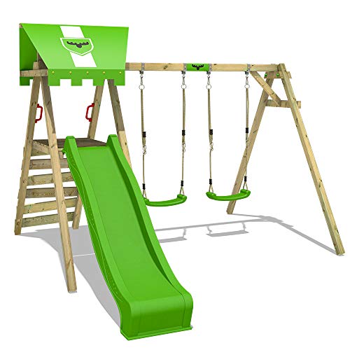 FATMOOSE JollyJess Royal XXL Altalena per bambini di legno piattaforma e scivolo