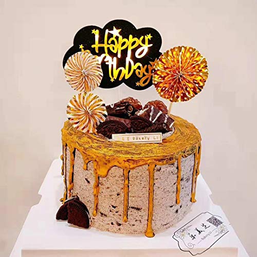 Fatti a Mano 5 Conte Glitter Cake Decorating Toppers per Torta Cupcake e Gelato - Happy Birthday Black Gold Fans Set