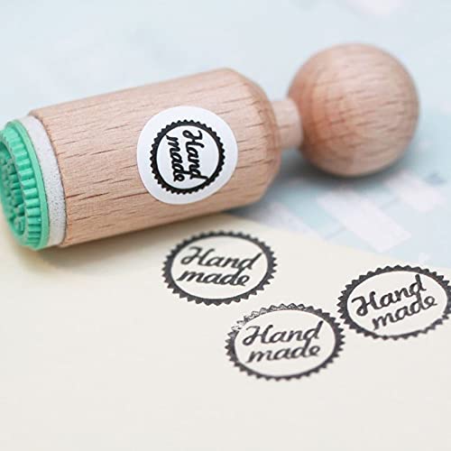 Di alta qualità timbri in gomma con la parola fatto a mano su all' interno di un cerchio con modello.