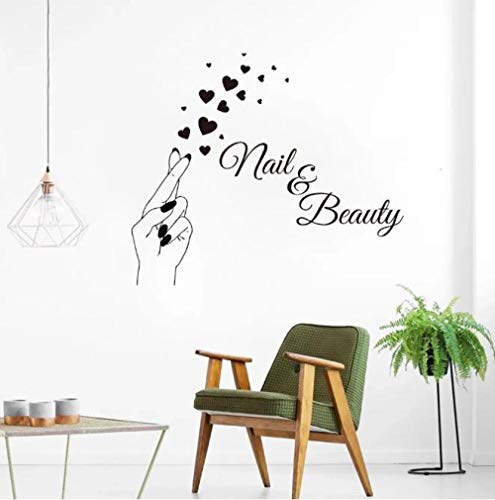 Faucet oersing Adesivi Murali Nail Beauty Mano Cuore Wall Sticker Negozio di Barbiere Nail Art Design Manicure Salon Decalcomania da Muro per Finestre Negozio di Vinile Arredamento per Salone 85X73Cm