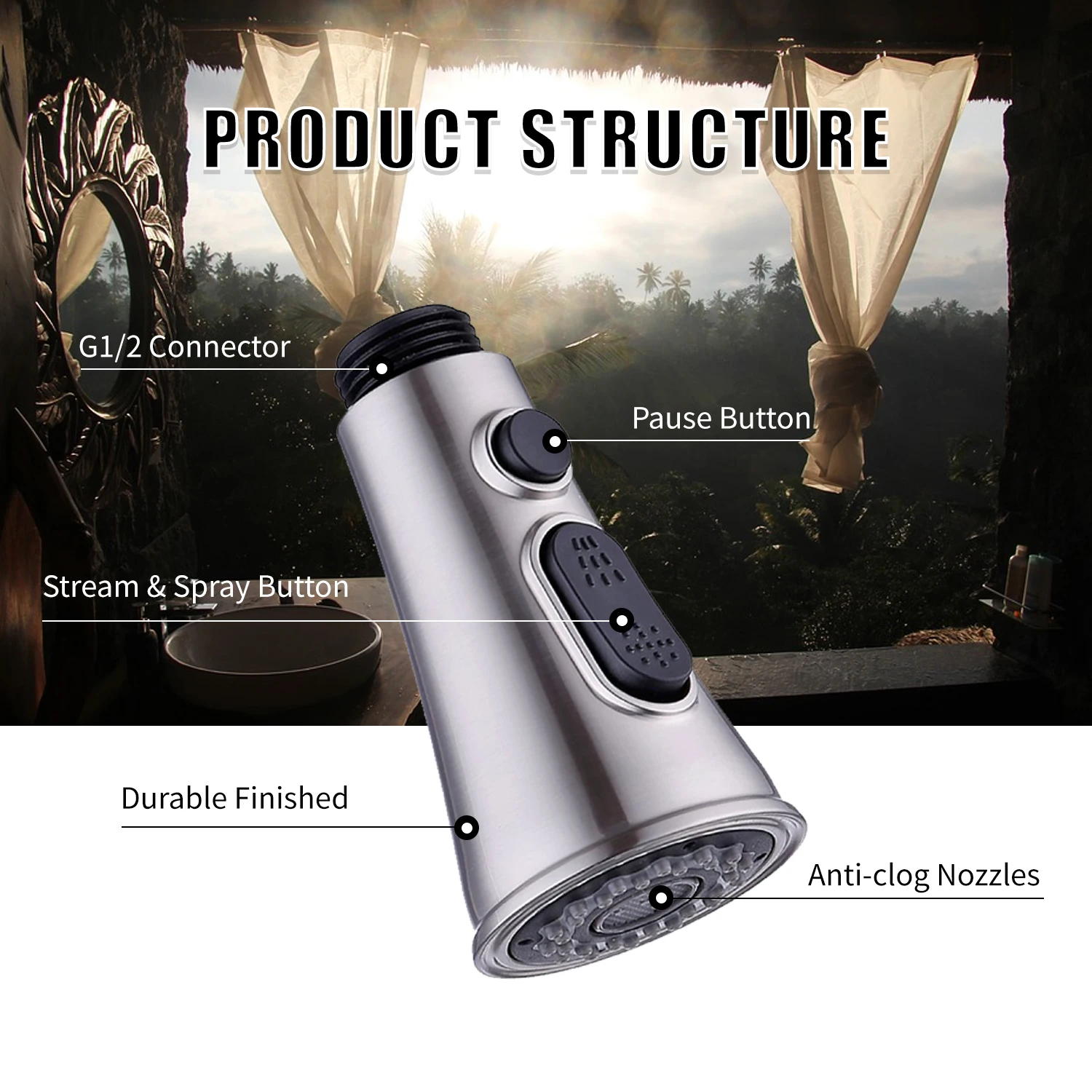 Faucet Spayer Head Sink Spray Head G1/2 Pull Out Spray Head Nozzle for Kitchen Faucet Faucet Replacement Spray Head Kitchen Tap