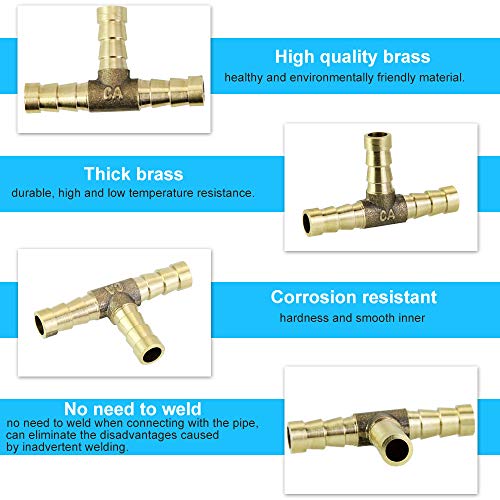 ►【Materiale in ottone massiccio】 Connettore per tubo a forma di T in ottone massiccio, resistente alla corrosione e alla duttilità e può essere utilizzato per lungo tempo.