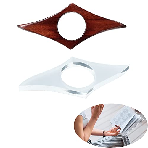 Favengo 2 Pezzi Strumento Fermapagine per Lettura con 1 Segnalibro per Pollice in Legno di Noce Naturale Fatto a Mano e 1 Supporto per Pagine di Libri in Acrilico per i Lettori, Book Lovers Regalo