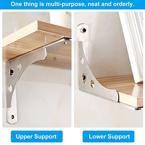 【Supporto a 90 gradi e supporto a doppia faccia】Il nostro supporto per mensola è progettato come un angolo di 90 gradi a forma di L, che sembra molto semplice, ma ha una struttura solida e offre molta capacità di carico. Questo supporto può essere utilizzato in alto o in basso, il che è molto conveniente.