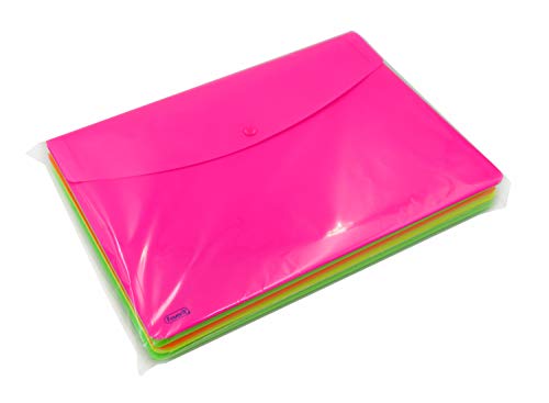 Favorit 400121105 Portadocumenti con bottone A4 linea Neon, confezione da 5 pz. colori assortiti fluo