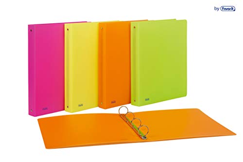 Favorit Raccoglitore in Polipropilene Neon, 22 x 30 cm, 4 Anelli Tondi da 30 mm, Fucsia Fluo