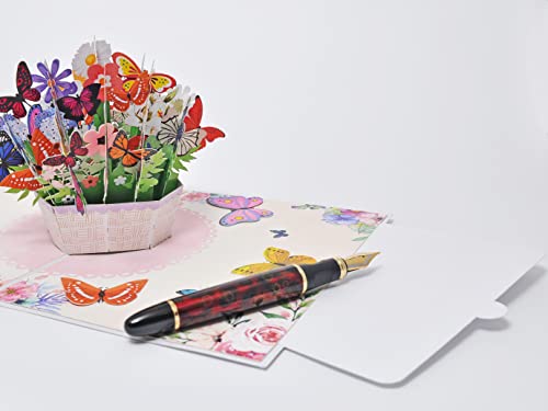 Favour Pop Up® - Biglietto in 3D con uno splendido cesto di fiori, per un compleanno, un augurio di pronta guarigione o per un caro saluto. Con cartoncino a scorrimento su cui scrivere. TL094
