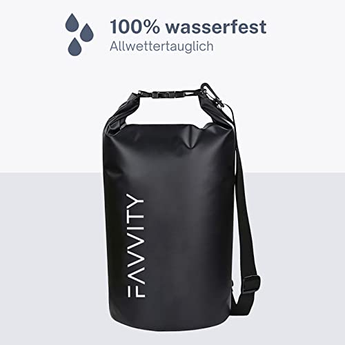 Favvity Borsa Impermeabile 10L - Dry Bag, SUP Bag, Marsupio Impermeabile, Borsone (Nero)