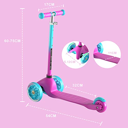 FAYDUDU Monopattino Bambina Monopattino 3 Ruote con LED Monopattino Bambino Monopattino per Bambini da 2-5 Anni, Regolabile Altezza (Rosa)