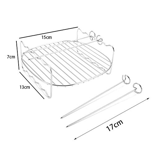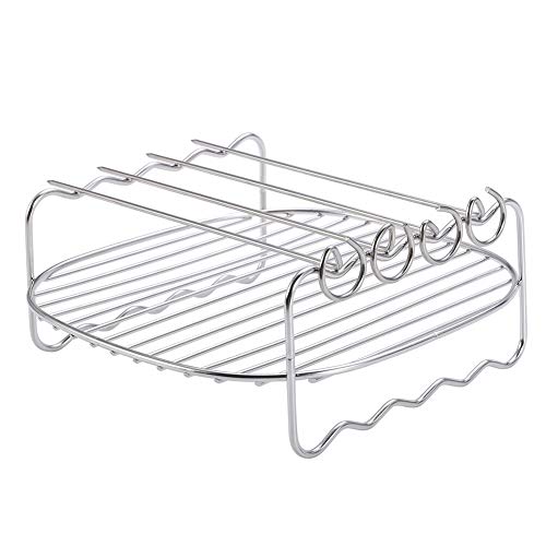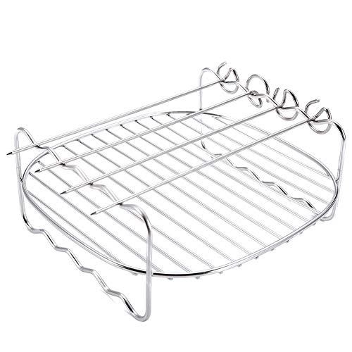 Materiale di alta qualità per alimenti: il nostro scaffale per accessori per friggitrice ad aria è realizzato in acciaio inox 304 di grado alimentare, materiale approvato dalla FDA, durevole e resistente al calore, adatto al forno fino a 500 gradi. I migliori accessori per friggitrici: rack a doppio strato per ricette più versatili. Il rack in acciaio inox e 4 spiedini massimizzano la superficie di cottura, la capacità di fare di più per verdure o carne, molto comodo e risparmio di tempo.