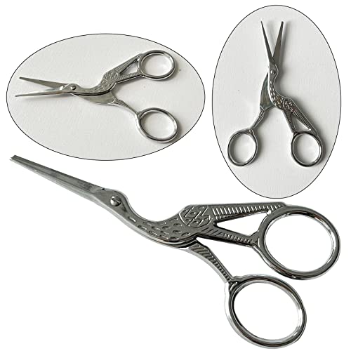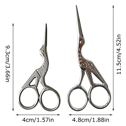Fayemint 2 Pezzi Forbici da Ricamo, Vintage Forbici da Cucito, Forma di Cicogna Forbici, per Gru Fai-Da-Te, Cucito, Artigianato, Artigianato, Ricamo (Argento)