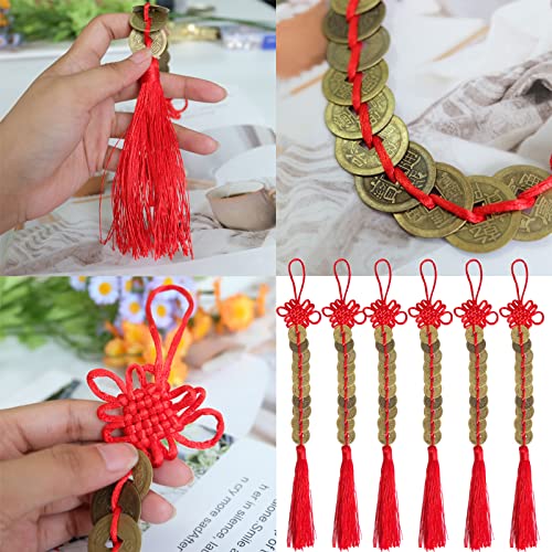 Fayemint 8 Pezzi Moneta Portafortuna Monete Feng Shui, Feng Shui Ciondolo Nappa per Monete Cinesi, Monete Nodo I-Ching, Per Ricchezza, Fortuna, Salute, Regalo Meraviglioso (10 Monete)