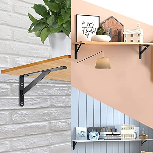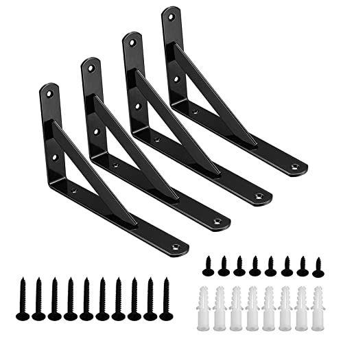 Fayemint 4 Pezzi Staffe In Metallo, Supporto per Mensola, Staffe Mensola a Muro, per Ripostiglio a Parete, Soggiorno, Camera da Letto, Studio, Sala da Pranzo, Cucina(Nero)