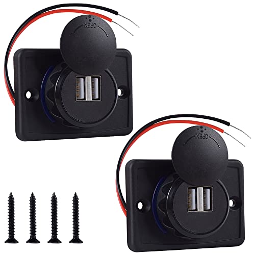 FBBULES 4.8A Caricabatteria da Auto USB Doppio Presa di Ricarica USB Presa di Corrente Rapida Pannello di Ricarica Rapida per Auto per la Maggior Parte dei Veicoli di 12V-24V (2 Pezzi)