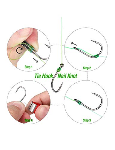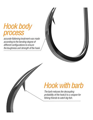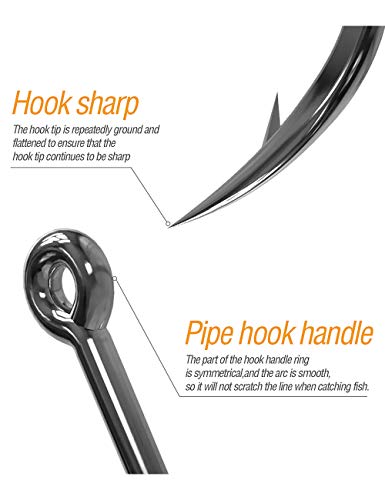 ▶ Il durevole cerchio liscio ad occhio chiuso, il gambo robusto, la ardiglione senza ostacoli e la punta affilata, ideale per i pescatori che trattengono più pesci.