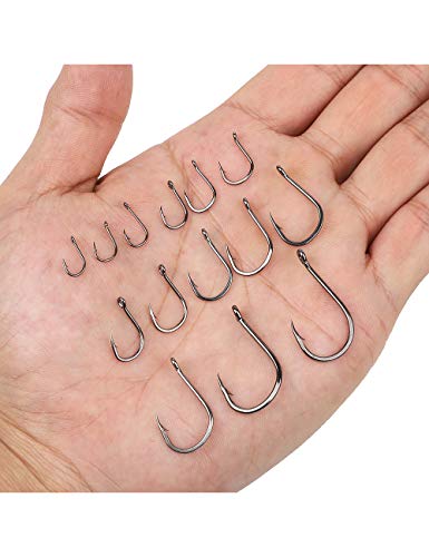 FBBULES Ami da Pesca 600pcs, Ganci dagli Occhi d'Acqua Dolce d'Acqua Salata 3# -12# Piccoli Ami da Pesca Ganci a Cerchio Olecrano a Gambo Lungo con Scatola di Plastica