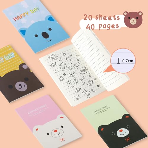 FBBULES 36 Pezzi Mini Quaderno, Taccuino con Orso dei Cartoni Animati, Quaderni Tascabile per Bambini, Piccolo Blocco Note per Regali Viaggio Casa Ufficio Scuola
