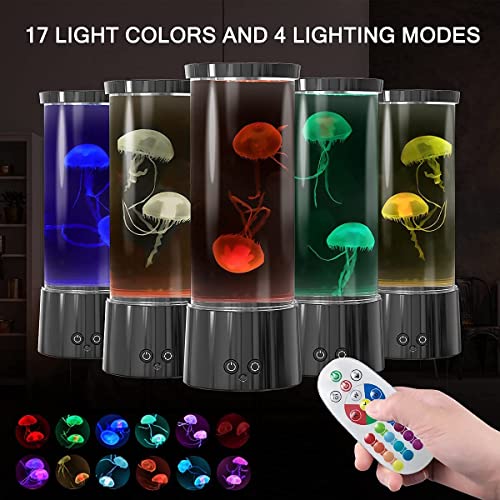 ☢ [Design intelligente] La lampada Lavalamp medusa a led dotata di telecomando, che può impostare 17 tipi di monocromatico RGB e 4 tipi di modalità di cambio colore. (Flash, Strobe, Fade, Smooth) e regolazione della luminosità e pulsante di accensione. È possibile impostare il dispositivo in modo che cambi automaticamente i colori o impostare il colore su un colore solido se si dispone di un preferito.