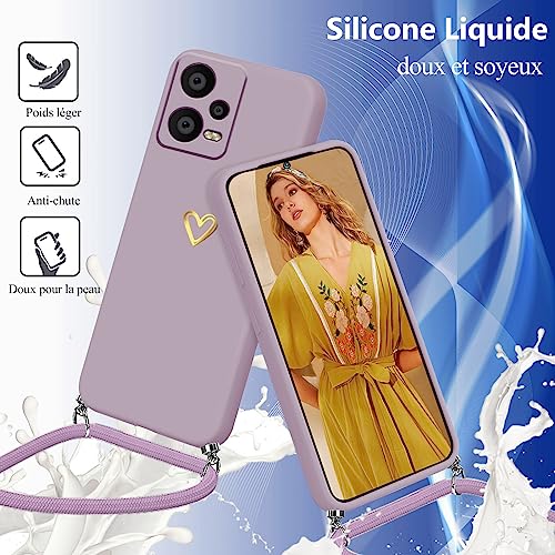 Fciaeytou Cover per Xiaomi Redmi Note 12 Pro 5G Cordoncino Collier, Slim Sottile Silicone Custodia per Redmi Note 12 Pro Case Motivo Cuore Antiurto Protezione Cover Xiaomi Note 12 Pro Portatile