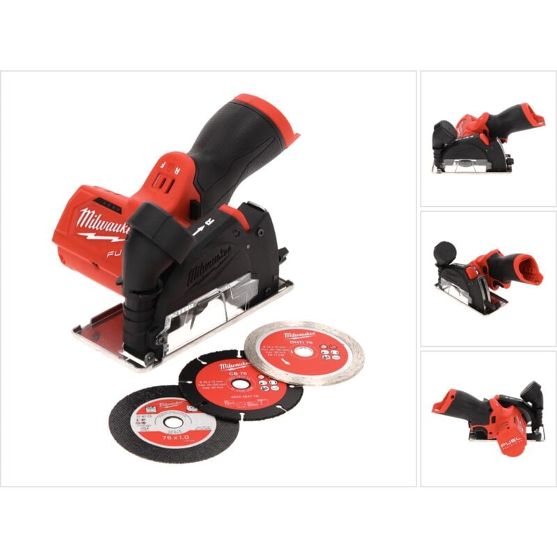 Contenuto della fornitura: - 1x Fresa multimateriale Milwaukee M12 FCOT - 1x disco da taglio diamantato - 1x disco da taglio in carburo - 1x disco da taglio in metallo - 1x Aspirazione polvere regolabile - senza batteria, senza caricabatterie Descrizione del prodotto: Con la fresa multimateriale Milwaukee M12 FCOT, i tagli puliti non sono un problema grazie all'elevata velocità di rotazione al minimo, fino a 20.000 giri/min. È possibile tagliare diversi materiali come acciaio, acciaio inox, metalli non ferrosi, blocchi da costruzione a secco, fibrocemento, plastica e ceramica con speciali dischi da taglio (disco da taglio per metallo, disco da taglio HM, disco da taglio diamantato). Con un peso di soli 1,1 kg e una lunghezza di 226 mm, la fresa multimateriale è stata ottimizzata per l'uso con una sola mano. Il coperchio di protezione dell'M12 FCOT è facile da regolare. Inoltre, l'M12 FCOT offre l'esclusiva possibilità di cambiare il senso di rotazione della lama per proteggere