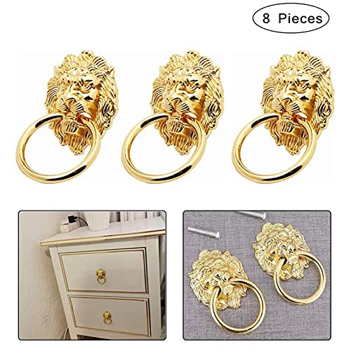 FCQLFYF 8 Pezzi Pomelli Per Porta,Testa Leone Pomello Mobili,Cassetto Tirare Maniglia,Pomelli Cassetti Comò Testa Leone,Per Pomoli Porta Gioielli Portagioie Anello Cassetto Maniglia Maniglia (Oro)