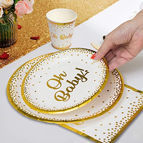 FCQLFYF 80 Pezzi Set Stoviglie Compleanno,Stoviglie per Feste,Piatti,Cartone Tazze,Tovaglioli,Cannucce,per Baby Shower,Compleanno,Addio al Nubilato,Decorazioni per Feste (Oro Bianco)