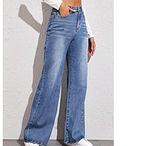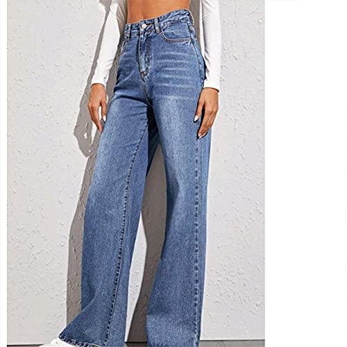 FCWJHNTSL High Straight Jeans Jeans Donne Autunno Blu Casual Allentato Gamba Gamba Pantaloni Pantaloni a Strisce Palazzo Pantaloni-L.