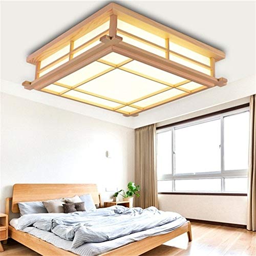FCX-LIGHT Plafoniera LED dimmerabile Camera da Letto in Legno Lampada da soffitto in Stile Giapponese Soggiorno Camera da Letto Balcone Lampada in Legno,Wood,35CM