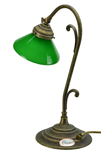 Fd-bolletta arredamento e illuminazione Lampada ottone da comodino,tavolo,scrivania,illuminazione per interni con paralume vetro verde m33 Misure:H 36cm, Ø paralume 15cm, Ø base 15,3cm