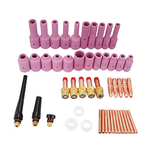 Fdit Kit Accessori consumabili per Torcia TIG da 50 Pezzi, Corpo Pinza TIG Ugello in allumina Guarnizione Coppa Posteriore Kit Coppe per Lenti a Gas per Torcia per Saldatura TIG SR Db WP 17 18 26