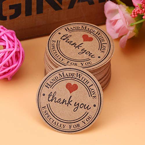 Fdit Etichette Regalo d'Amore Fatte a Mano da 100 Pezzi Etichette Regalo Fatte a Mano dipinte Rotonde Etichette Regalo Kraft per Decorazioni Natalizie da Appendere(Than You with Heart)