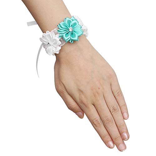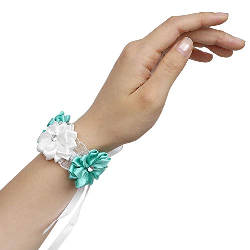 Fdit Forniture per Matrimoni, Nastro di Simulazione Romantico da Indossare Facilmente 6 Pezzi Fiore da Polso da Sposa, Damigelle d'Onore Sposa Festa per(Tiffany + White)