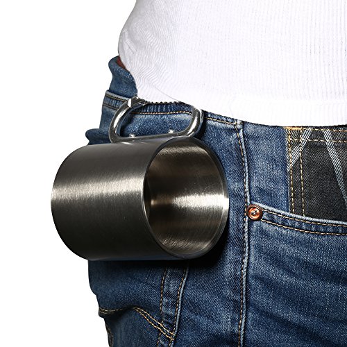 Fdit Tazza Classica Portatile, Taza Acampar Filtro Agua Ducha da Viaggio in Acciaio Inox Tazza da Campeggio con Moschettone Escursionismo da Campeggio Sport Acquatici con Manico