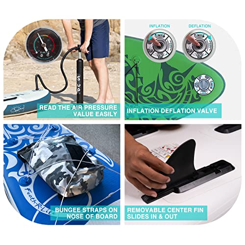 Feath-R-Lite - Set da sup con tavola da surf gonfiabile, pagaia, pompa, zaino ISUP, corda e custodia impermeabile, 320 x 76 x 15 cm (verde 1)