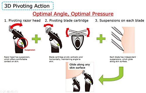 L'innovativa testa girevole a 3 D permette al rasoio di muoversi senza intoppi sul contorno del viso.